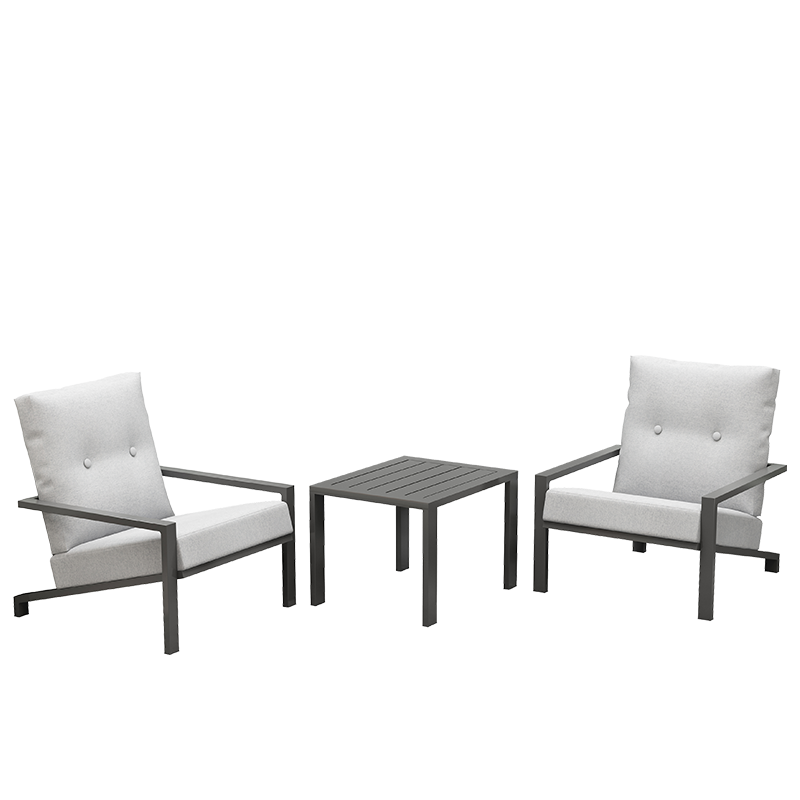 Experience indoor comfort outdoors with the "RICHLY" Aluminum Patio Furniture Set. This 3-piece bistro set includes 2 aluminum outdoor chairs with waterproof cushions and 1 aluminum patio table, perfect for any balcony, lawn, garden, or backyard. Stylishly designed and durably constructed, each piece supports up to 330 lbs. Enjoy luxurious relaxation with this outdoor conversation set, available in brown and dark grey.