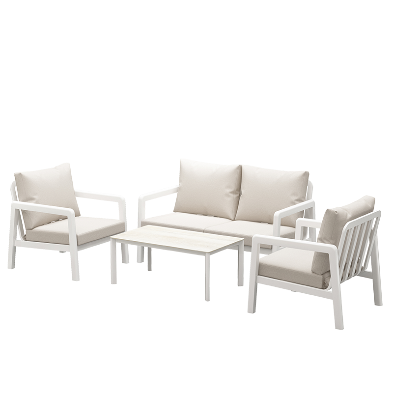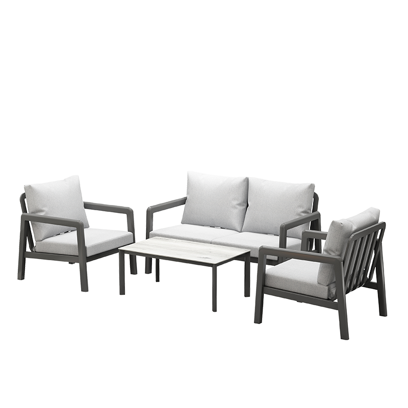 Experience ultimate outdoor comfort with the "RICHLY" Aluminum 4-Piece Extra Large Patio Furniture Set. This stylish and durable set includes an outdoor sectional sofa with washable cushions and a coffee table featuring a stone plastic composite (SPC) top, perfect for any garden, poolside, or backyard. Designed for luxurious relaxation, each piece combines elegance and functionality. Transform your outdoor space with this versatile conversation set.