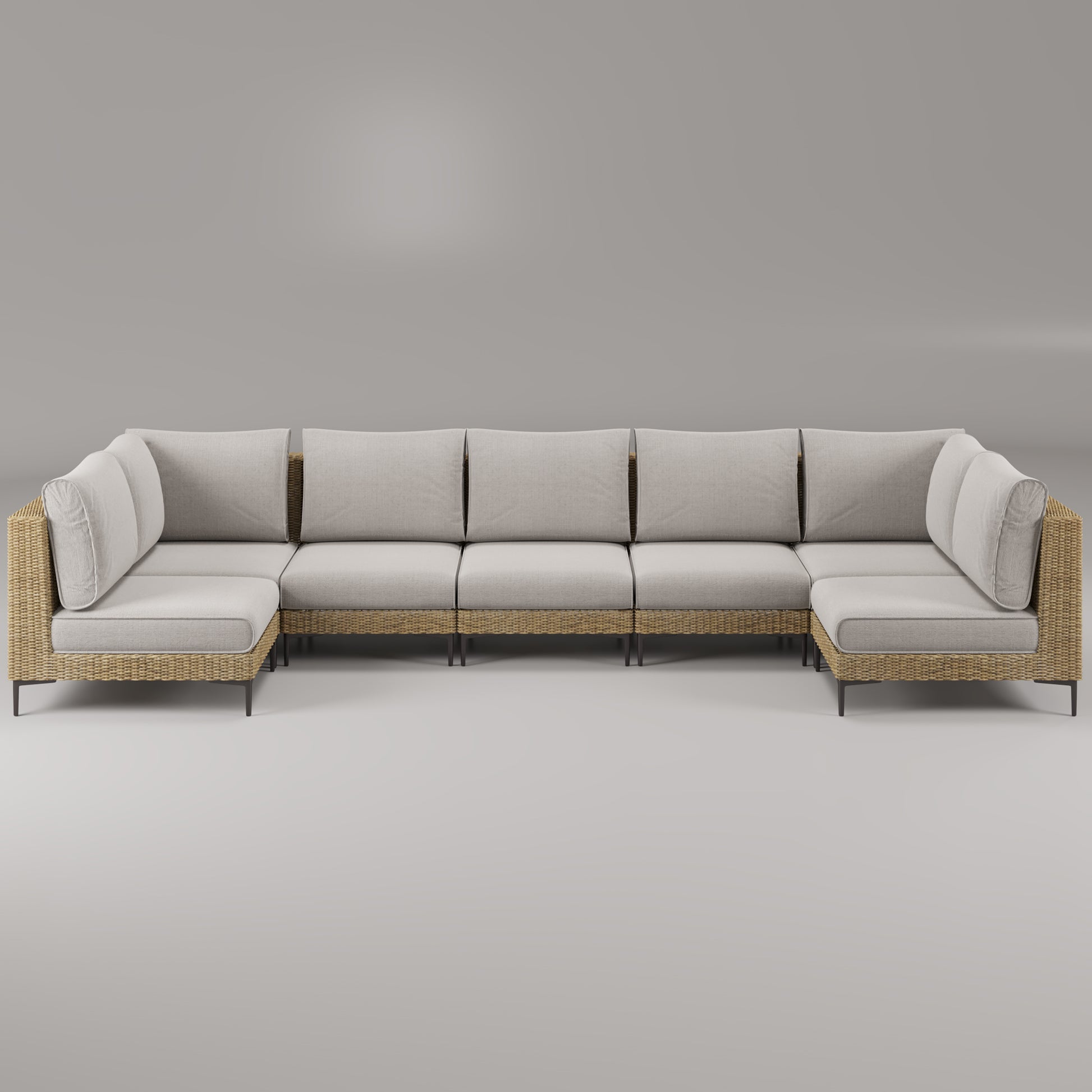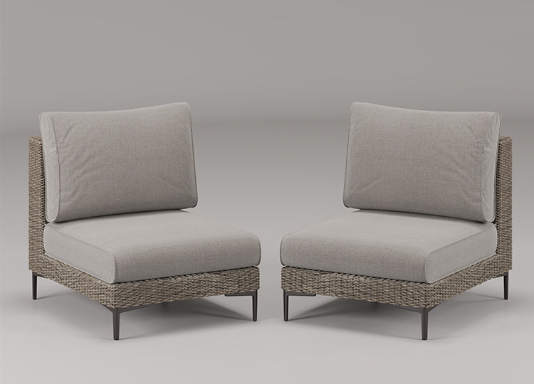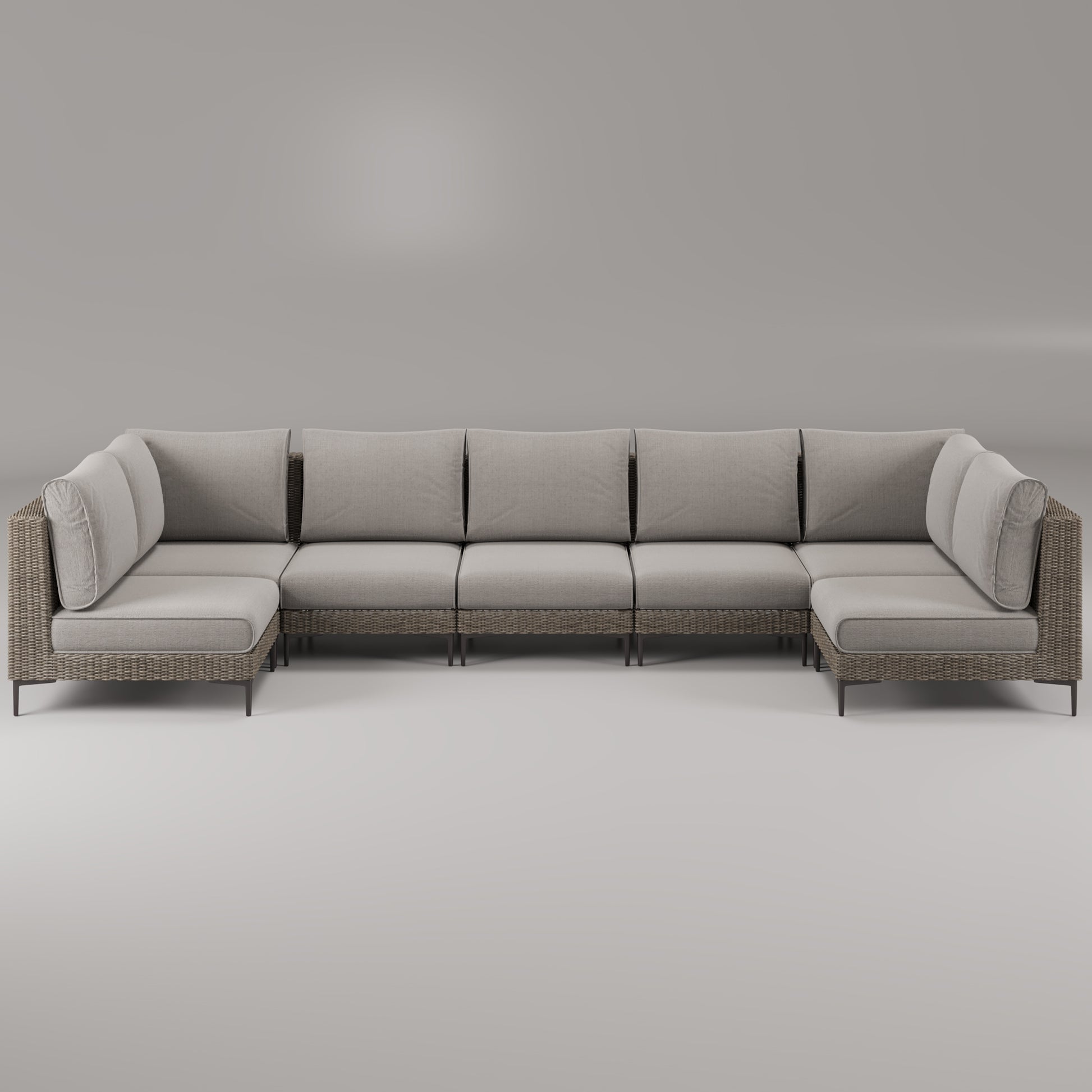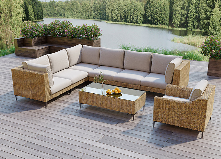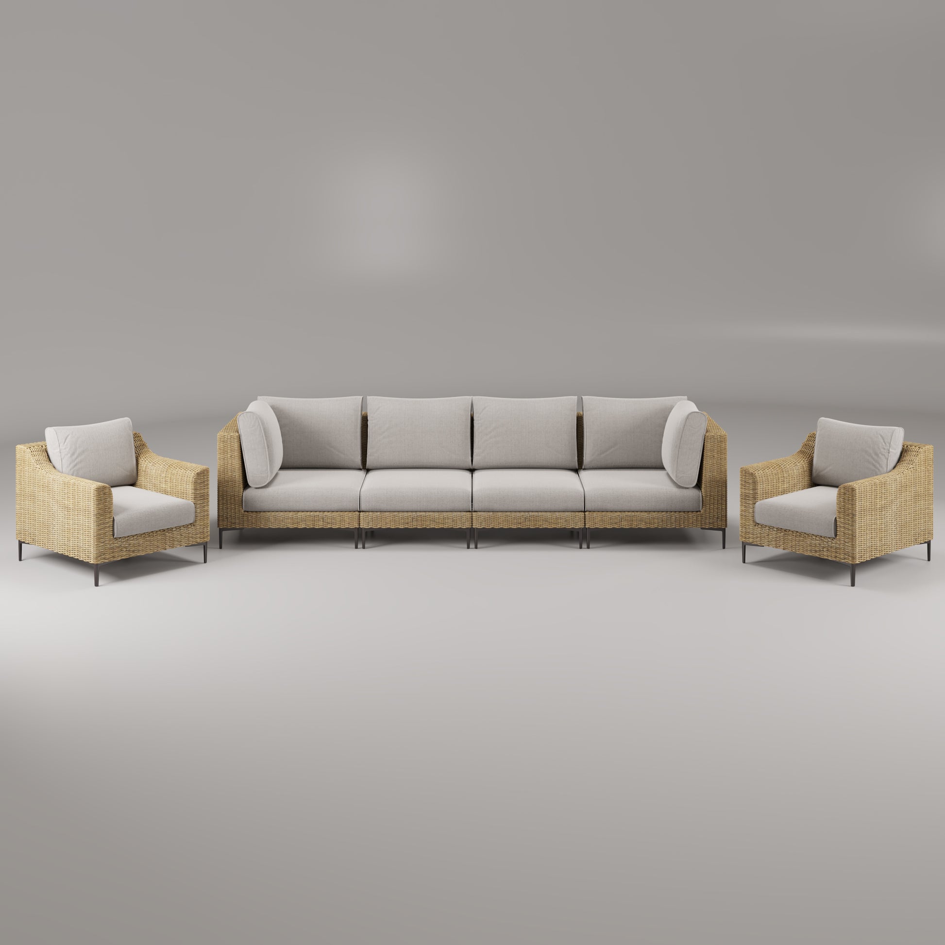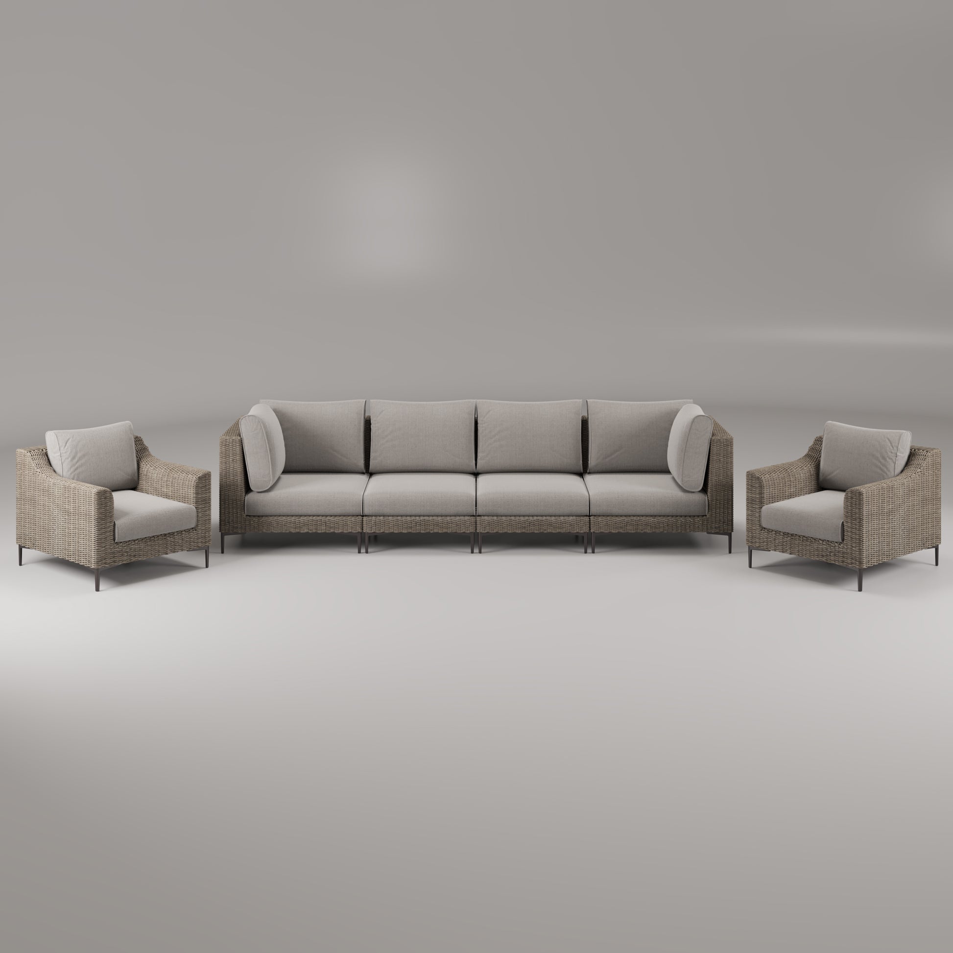 Enjoy indoor comfort outside. Stylish and durably designed from All-Weather Wicker, Richlylive’s modular patio furniture invites you to relax on luxuriously comfortable memory foam cushions. The built-in, easy-to-use waterproof dust cover protects the cushion when not in use, and comes with Velcro to hold it in place and a handle for easy carrying and storage. Includes 2 corner chairs and 3 armless chairs that you can reconfigure.