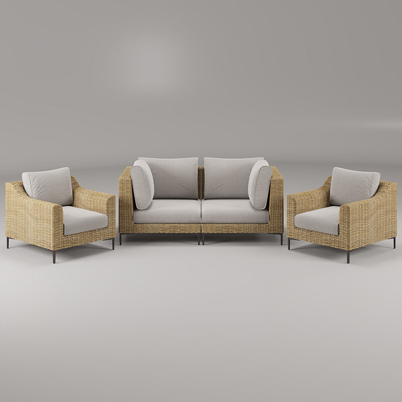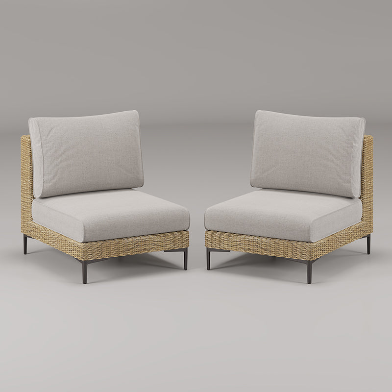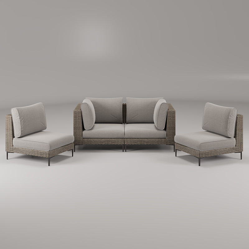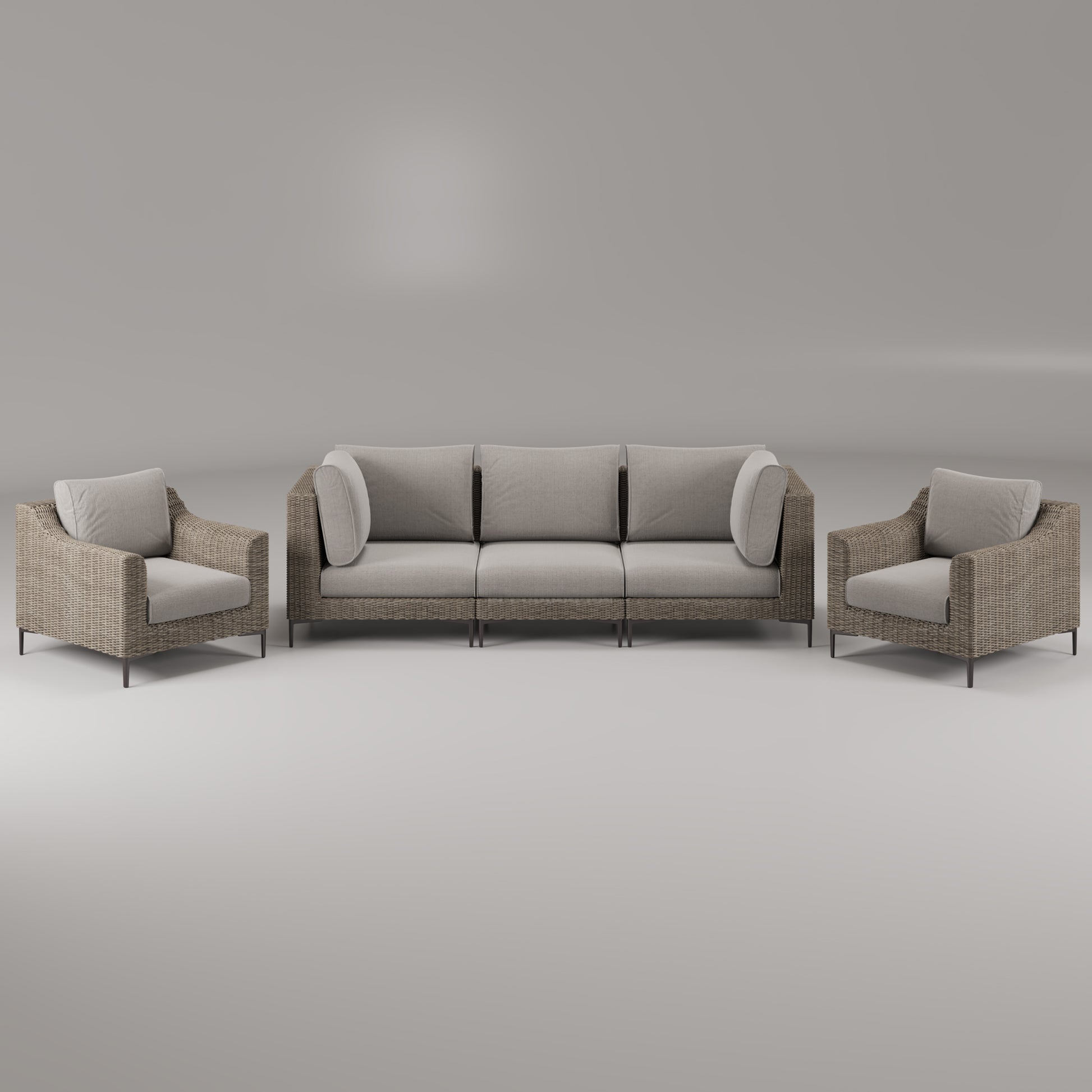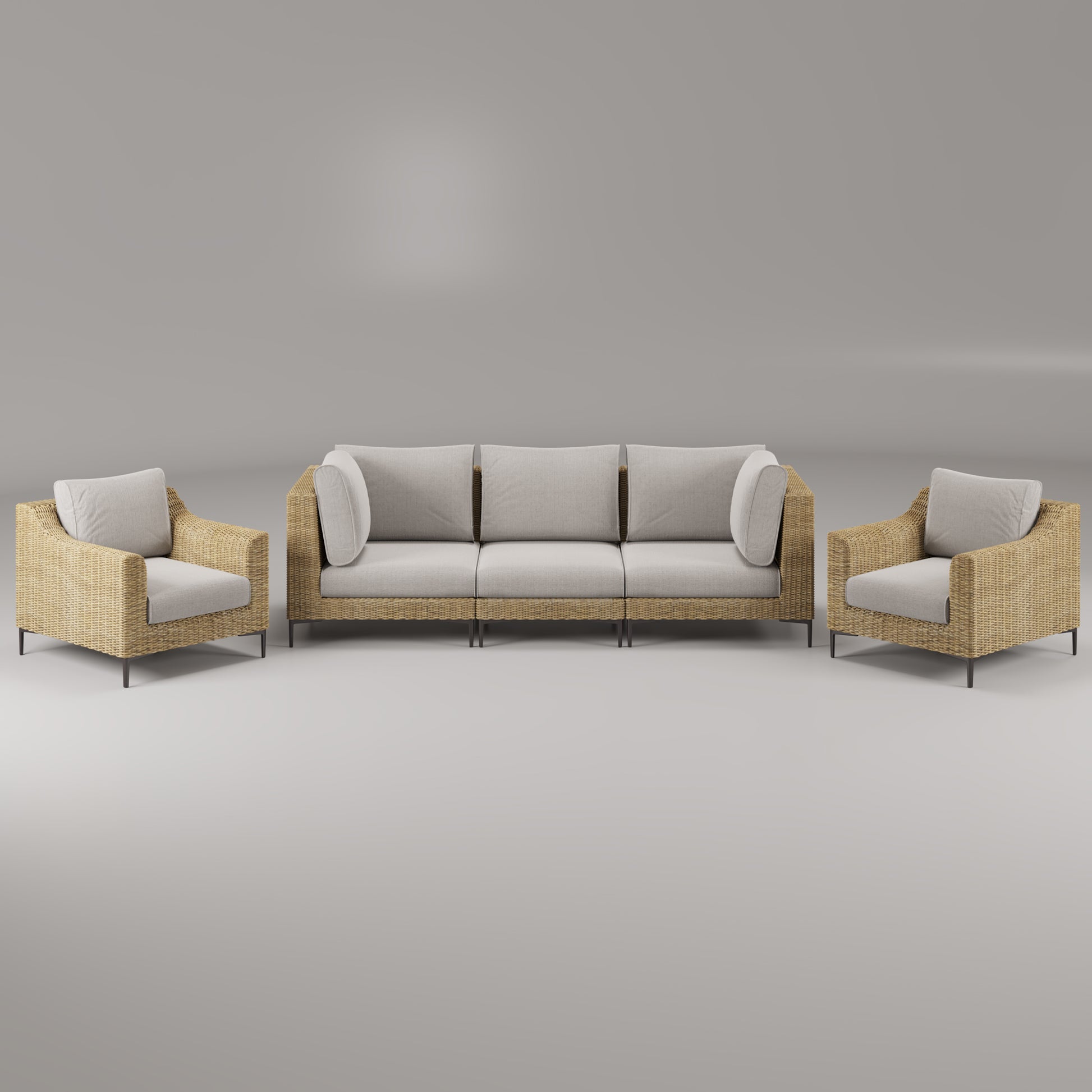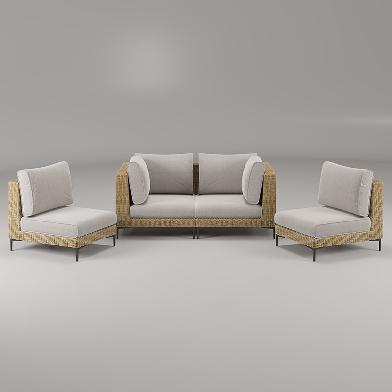 Enjoy indoor comfort outside. Stylish and durably designed from All-Weather Wicker, Richlylive’s modular patio furniture invites you to relax on luxuriously comfortable memory foam cushions. The built-in, easy-to-use waterproof dust cover protects the cushion when not in use, and comes with Velcro to hold it in place and a handle for easy carrying and storage. Includes 2 corner chairs and 3 armless chairs that you can reconfigure.
